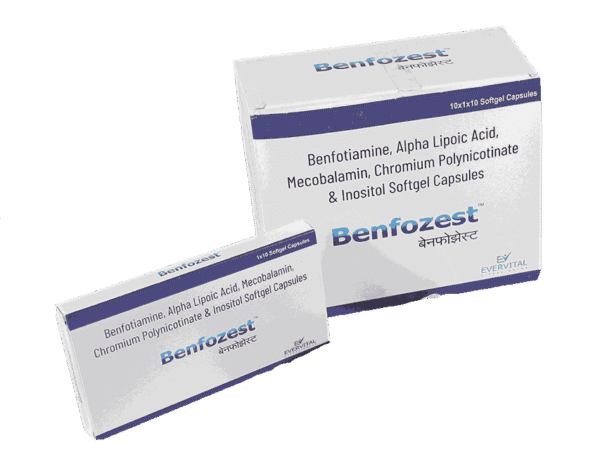 Benfozest Tablet from Evervital Lifesciences offers an advanced and multifaceted nutritional solution for optimal nerve health, comprehensive neuropathy management, and robust overall well-being, ensuring vital nutrient support for a healthier life.