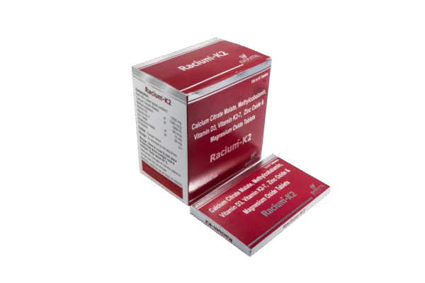 How Racium K2 Works: Racium K2 contains a comprehensive blend of Calcium Citrate Maleate, Zinc Oxide, Magnesium Oxide, Vitamin D3, and Vitamin K2-7. Each component plays a crucial role: